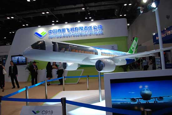 The model of C919 displayed by the Commercial Aircraft Corporation of China, Ltd at the 15th Aviation Expo in Beijing, capital of China. The four-day event kicked off at the China National Convention Center in Beijing on Sept. 25, 2013. (People's Daily Online/Yan Meng)
