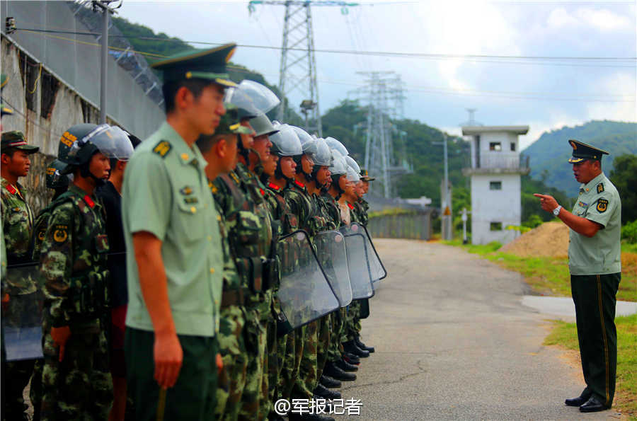 Over 200 officers from the border defense force of the the People's Armed Police force in Guangdong and Hong Kong border police jointly conduct an anti-smuggling and anti-stowaway exercise in the border area in Shenzhen, south China's Guangdong province on June 12, 2015, so as to enhance the cooperation level in joint operations. (Photo source: Weibo of PLA Daily)