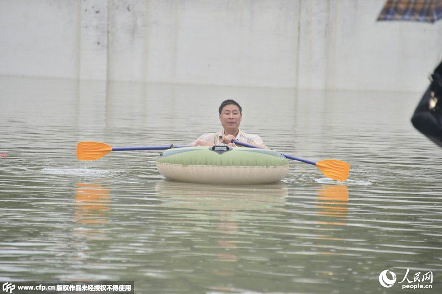 Citizens went boating in rainstorm-stricken Changzhou city, east China's Jiangsu province. Rainstorm lasted for over 10 hours from June 16 to the next day in the lower Yangtze region. Many cities in this region became 'Venice'.