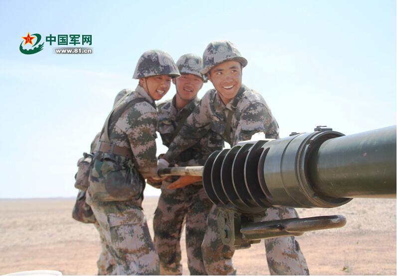 PLA soldiers of an artillery regiment from Lanzhou Military Region recently conduct a live shell drill in Gobi desert. The drill helps to build up the courage and fighting capability of the soldiers in harsh environment. (Photo/81.cn)