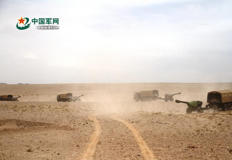PLA soldiers of an artillery regiment from Lanzhou Military Region recently conduct a live shell drill in Gobi desert. The drill helps to build up the courage and fighting capability of the soldiers in harsh environment. (Photo/81.cn)