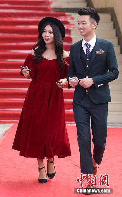 Graduates of Communication University of China at Nanjing shining on the red carpet. (CNS/Yang Bo)