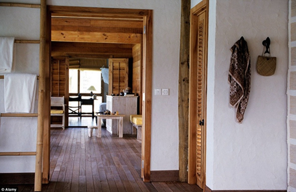 The thick beams of wood in the huts are built from sustainable materials such as plantation teak and re-cycled telegraph poles, and seek to blend rustic charm with modern comfort