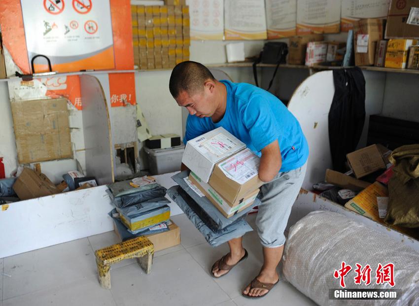 Xing Liang, 33, is a courier living in Changchun, northeast China’s Jilin province. Born with a deformity in his left arm, he has to rely on his right arm to work. Optimistic and hard-working, Xing Liang shows no difference with other couriers, with a record of delivering 315 packages a day. He has become a star courier of the community. (CNS/Zhang Yao)