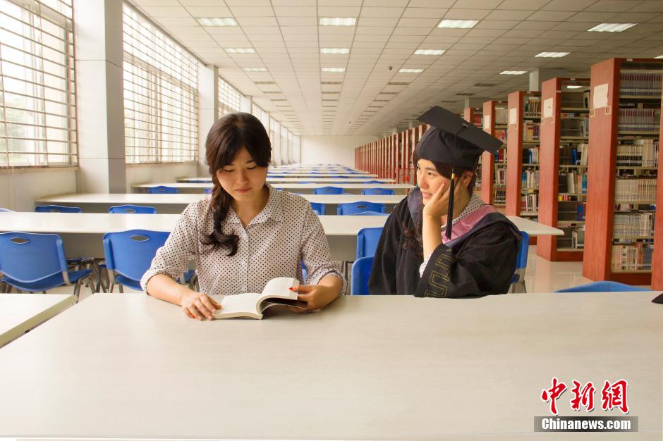 A group of creative graduation photos released by college students in Jinjiang College of Sichuan University has drawn much attention from the public. The students photoshopped themselves into the photos, showing their youth stories in fresh and romantic style. (Photo/Cheng Ming)
