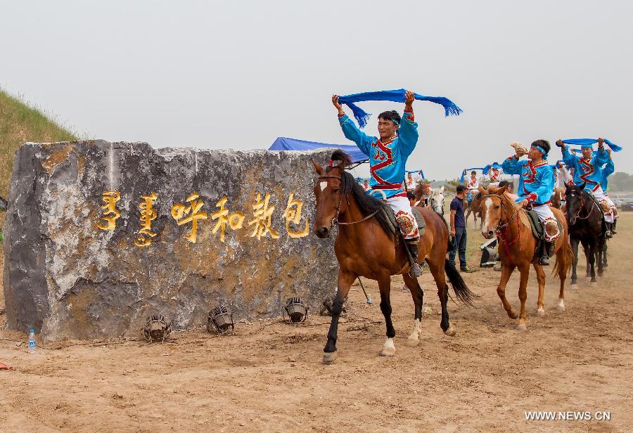 Participants take part in a parade during a Nadam fair in Hohhot, capital of north China's Inner Mongolia Autonomous Region, June 28, 2015. Nadam is a mass traditional Mongolian festival where people celebrate harvests and pray for good luck. (Xinhua/Ding Genhou)