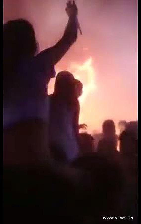The video grab taken on June 27, 2015 shows the scene where a fire took place at a park in New Taipei, southeast China's Taiwan. A fire, which was suspected of resulting from explosion of a large amount of unknown flammable powder, in a recreational park in Taiwan's New Taipei city on Saturday has injured at least 474 people. (Xinhua)