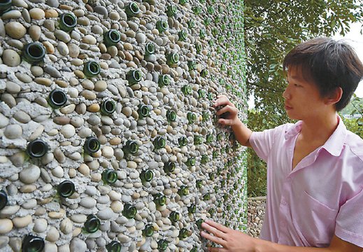 Li Rongjun plans to establish a design studio to help people build creative and comfortable houses. However he only wants to sell his ideas and does not want to draw the design himself. He wants to attract designers and investors with this creative structure built with beer bottles.