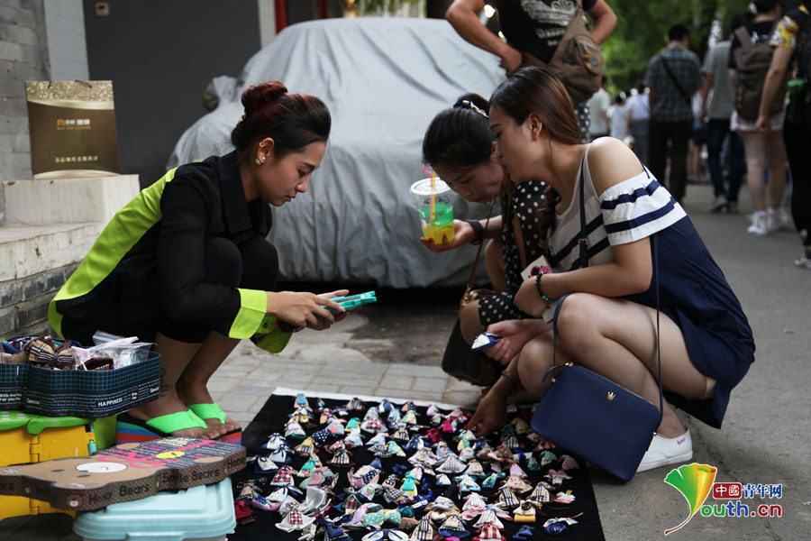 Ma Yi begins to sell the hairpins in South Luogu Lane at 5 p.m. (Youth.cn/Cao Di)