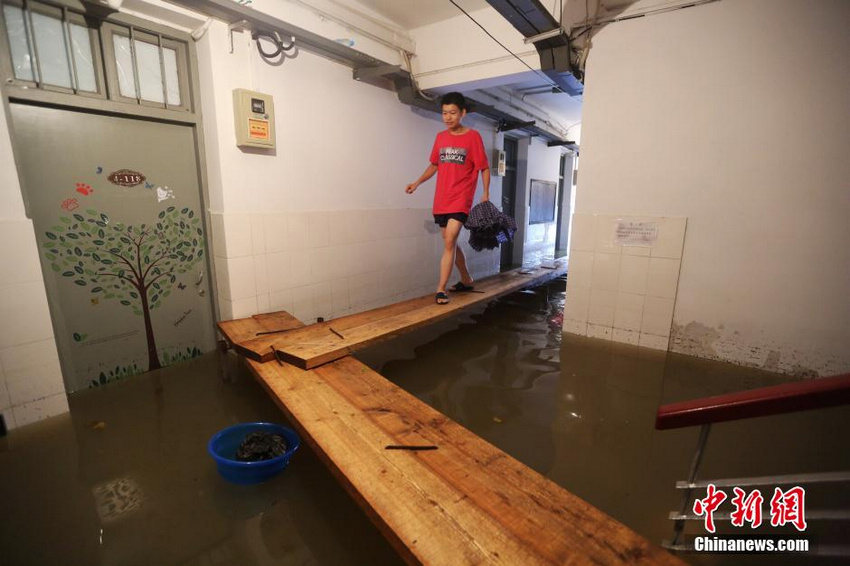 College students build bridges in dormitory in rainstorm-stricken Nanjing (2)