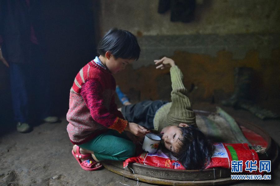 Shengli’s father can’t go out to work because Shengli and his grandma need care. The family’s annual income is only 4000 yuan. Shengli needs his mother’s help when he wants to drink water or relieve himself. His 8-year-old sister takes on lots of responsibility, including boiling water and bathing her brother. The whole family spares no effort in caring for a boy that may never give anything in return.