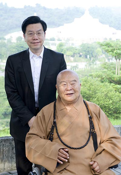 Kai-Fu Lee poses with Buddhist monk Hsing Yun. Photo provided to China Daily