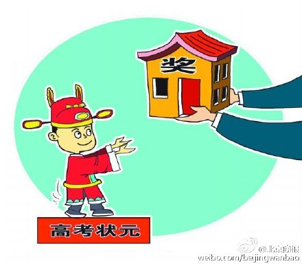 Qi Wenjie, the top scorer of the college entrance exam in Enping, Guangdong province, is rewarded with an apartment worth 500,000 yuan by a local company. Other students who did well in the exam also got prize money of 50,000 or 30,000 yuan.