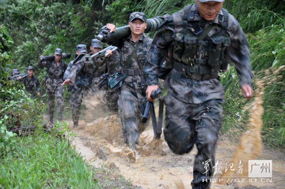 Braving the hot wave, the frontier soldiers conduct training including fighting in water, rock climbing in the mountain areas in south China's Guangxi. (Photo/81.cn)