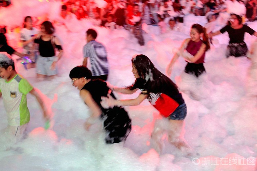 Foam party lands in walking street in Jinhua (6)