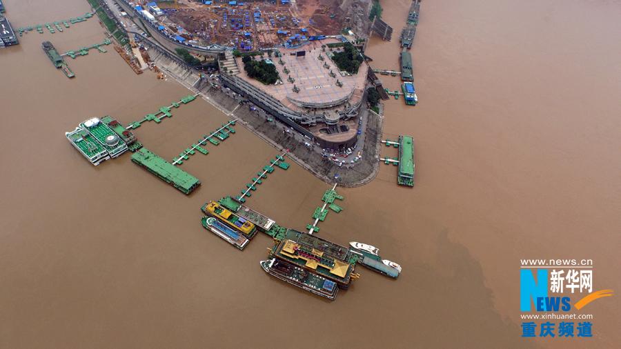 Due to the heavy rainfall in Sichuan, the Yangtze River and Jialing River in Chongqing see the worst flooding process, in which the water level rose up to 7 to 10 meters. Aerial photos of the riverside areas of Chongqing’s main districts after the flood peak transit were taken by drones. (Photo/Xinhua)