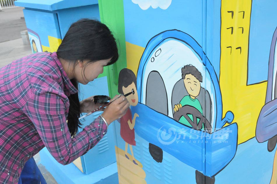 Post-90s girl paints colorful 'coats' for municipal facilities in Qingdao (7)