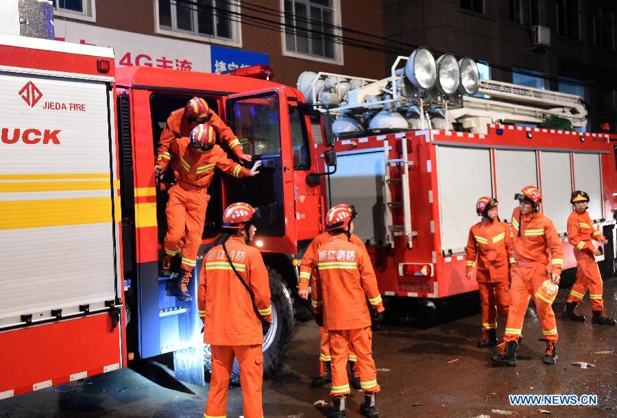 Rescuers work at the accident site in Daxi Town of Wenling City, east China's Zhejiang Province, July 5, 2015. The Jieyu Shoe Factory in Daxi Town collapsed Saturday afternoon, leaving six people dead. (Xinhua/Han Chuanhao)