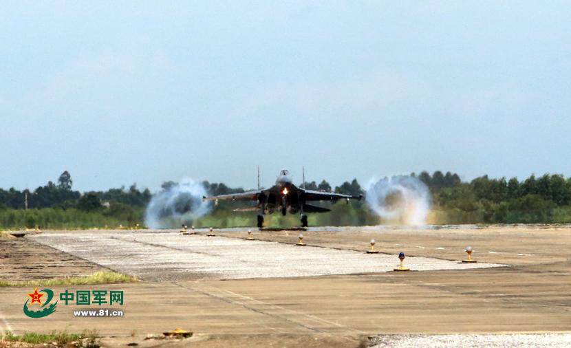 In this photo taken on June 25, J-11 fighters of the Air Force of Guangzhou Military Region under Chinese People's Liberation Army hold confrontation drill. (Photo source: 81.cn)