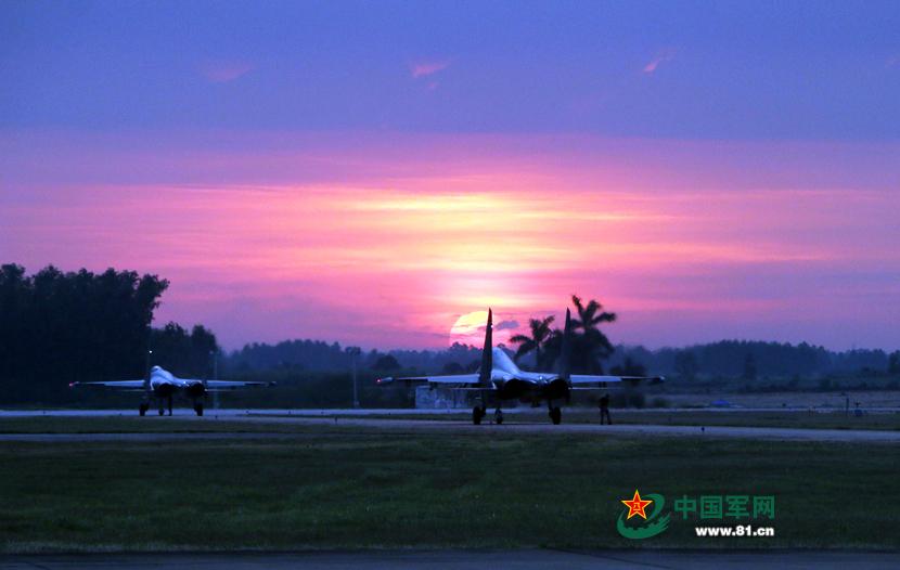 | In this photo taken on June 25, J-11 fighters of the Air Force of Guangzhou Military Region under Chinese People's Liberation Army hold confrontation drill. (Photo source: 81.cn) |