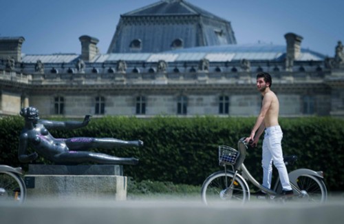 A man half-naked walks in a park in Paris France. (Photo/Xinhua)
