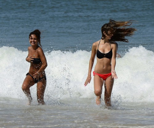 Two tourists play on the beach in Lacanau, France on June 30 2015. (Photo/Xinhua)