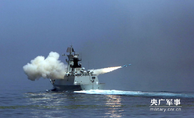 A tactical exercise is carried out by the Chinese Navy under simulated conditions of war in the Yellow Sea. Various types of missiles, torpedoes and artillery were fired during the drill. (Photo/ Wang Changsong)