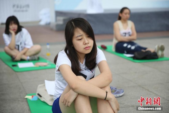 Eighty people of different age and with various jobs competed in Beijing to see who could space out the most on July 4, 2015. To win, contestants needed to look spaced out for two hours and refrain from making sudden or drastic movements. Using smart phones, chatting and listening to music are also prohibited during the contest. The first "Space-Out Competition" sponsored by a Korean artist Woops Yang in Seoul aims to show how important it is to take a break, clear one's mind, and space out. (CNS/Liu Guanguan)