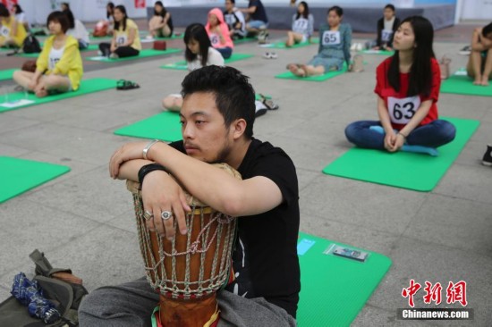 Eighty people of different age and with various jobs competed in Beijing to see who could space out the most on July 4, 2015. To win, contestants needed to look spaced out for two hours and refrain from making sudden or drastic movements. Using smart phones, chatting and listening to music are also prohibited during the contest. The first "Space-Out Competition" sponsored by a Korean artist Woops Yang in Seoul aims to show how important it is to take a break, clear one's mind, and space out. (CNS/Liu Guanguan)