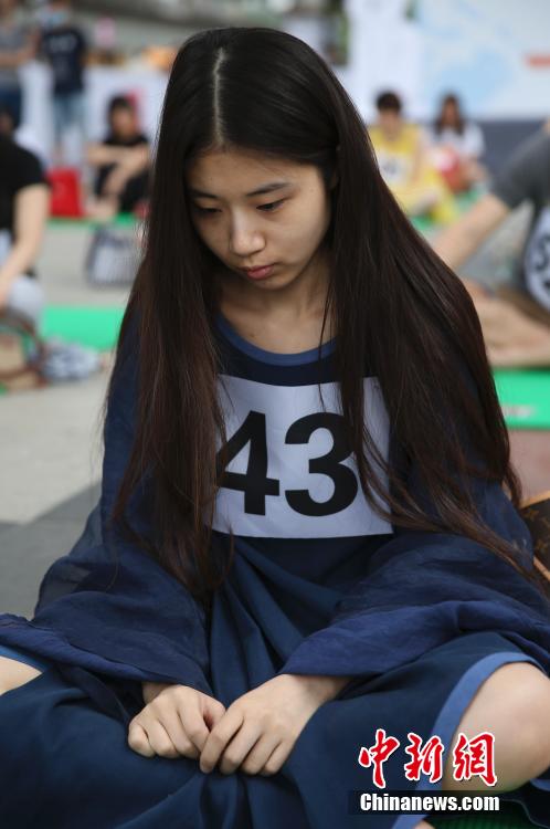Eighty people of different age and with various jobs competed in Beijing to see who could space out the most on July 4, 2015. To win, contestants needed to look spaced out for two hours and refrain from making sudden or drastic movements. Using smart phones, chatting and listening to music are also prohibited during the contest. The first "Space-Out Competition" sponsored by a Korean artist Woops Yang in Seoul aims to show how important it is to take a break, clear one's mind, and space out. (CNS/Liu Guanguan)