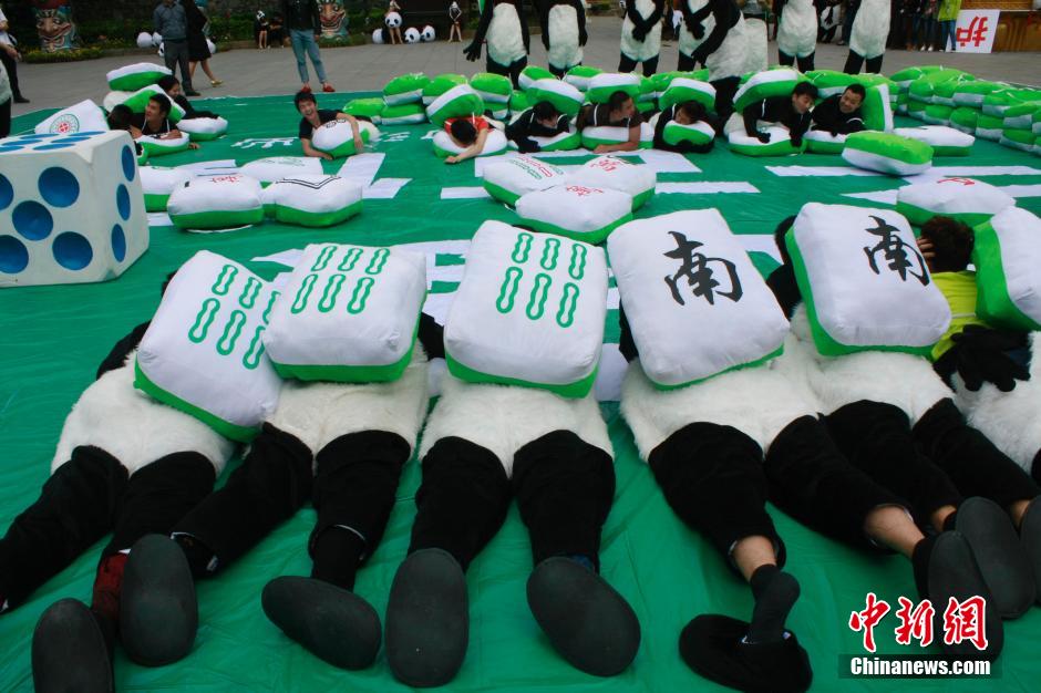 Hundreds of 'giant pandas' play mahjong in Jiuzhaigou, SW China (3)