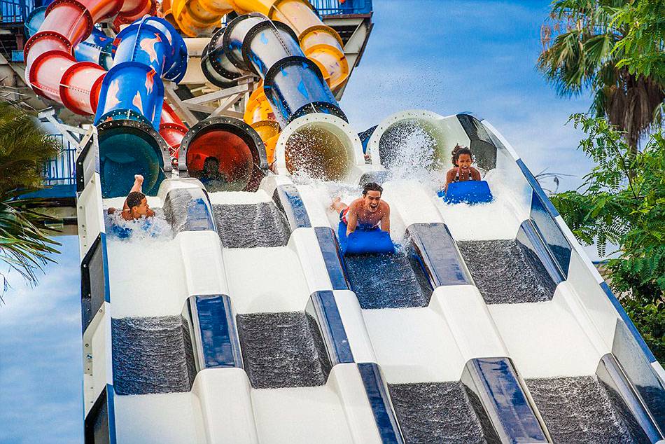 Aqua Drag Racer ride at Wet'n'Wild in Orlando has four slide tubes of 20 meters high and 110 meters long.(Screenshot/Xinhuanet)