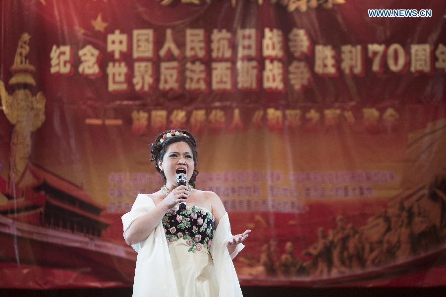 Singer Lin Wenyu performs during the commemoration in Buenos Aires city, Argentina, July 6, 2015. Overseas Chinese in Argentina on Monday celebrated the 70th anniversary of the victory in the Chinese People's War of Resistance against Japanese Aggression and the victory of World's Anti-Fascist War. (Xinhua/Martin Zabala)
