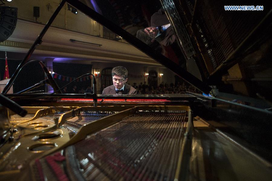 | Pianist Yu Hanqing performs during the commemoration in Buenos Aires city, Argentina, July 6, 2015. Overseas Chinese in Argentina on Monday celebrated the 70th anniversary of the victory in the Chinese People's War of Resistance against Japanese Aggression and the victory of World's Anti-Fascist War. (Xinhua/Martin Zabala) |