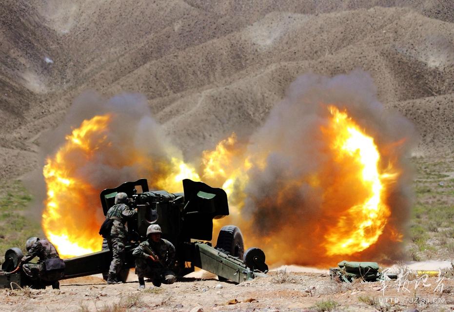 An PLA artillery regiment conducts a live fire drill in Tianshan mountains in Xinjiiang on July 2, 2015.(Photo/kj.81.cn)