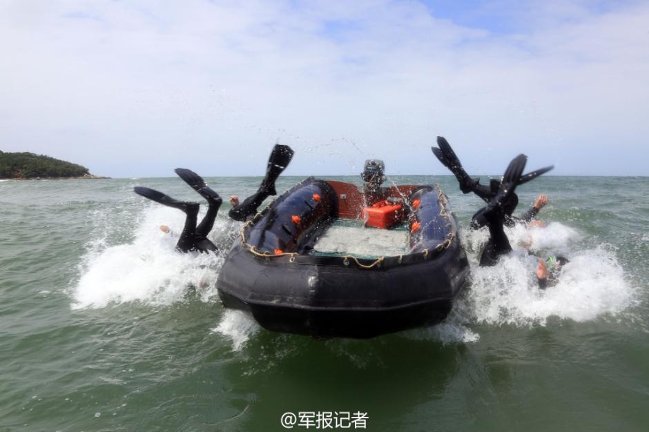 Photos taken on July 7, 2015 show combat training of oceanic diving conducted off the coast of south China's Guangdong province. (Source: Weibo of PLA Daily)