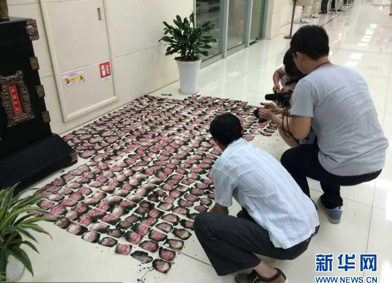 A villager’s cash worth 80,000 yuan was burned in a fire in his house in Lutong, east China’s Zhejiang province. Fortunately she retrieved part of the burnt banknotes. The owner took the remains of the banknotes to Tonglu branch of Bank of China which examined the remains and paid back 55,600 yuan to the owner. (Photo/Xinhua)