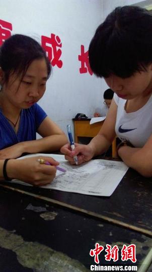 Xue Mengjie helps her students catch up on studies. (CNS/ Zheng Pengxiang)