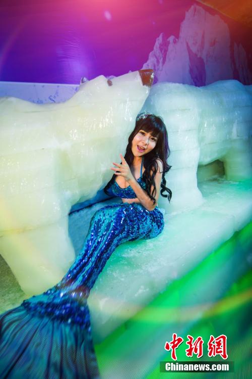 At the snow carnival being held at the scenic spot of Longhu Mountain, southeastern China's Jiangxi province, a sexy girl wears blue mermaid costume to attract visitors despite the temperature of minus 10 degrees Celsius. (CNS Photo)