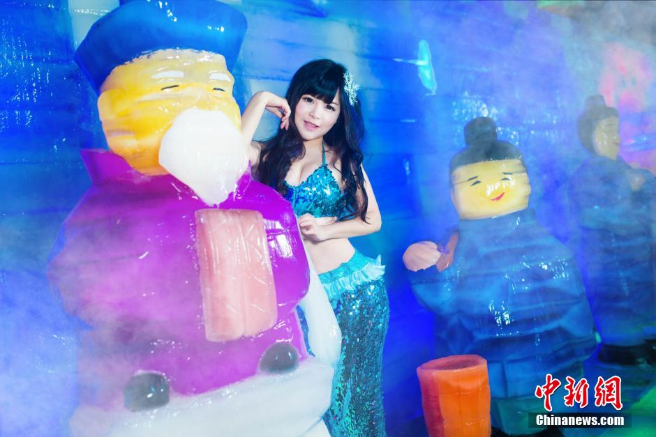 Girl wears sexy mermaid costume to attract visitors at snow carnival (7)