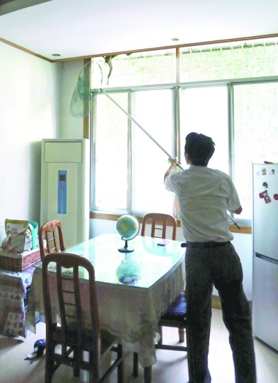 After the catchers arrived, two of them stayed outside the door, and two opened the door slightly and burst in the room. In less than 2 minutes, the "monkey king" was caught by a net. The money then was sent to the zoo.