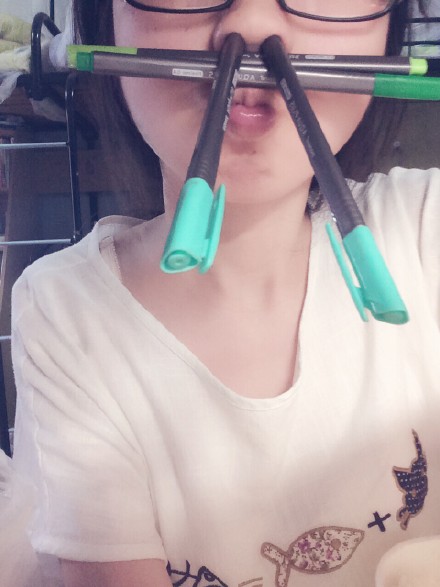 Hot on the Internet! How many pens can you hold with your lips? (2)