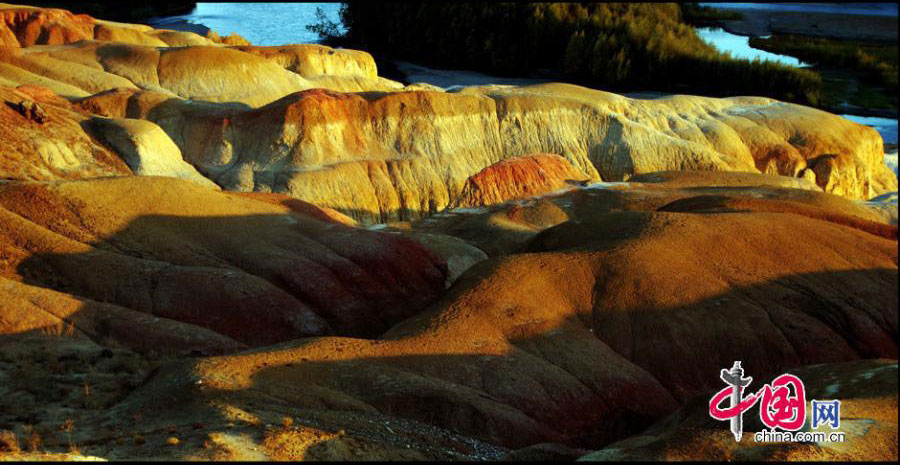 Located in Burqin County of Northwest China's Xinjiang Uygur Autonomous Region, Wucaitan, or Rainbow Beach, is a sightseeing spot known for its unique landforms created by years of wind and water erosion. Featuring blue sky, colorful beach and clear water, Wucaitan is one of the most famous attractions in Xinjiang. (Photo/China.org.cn)