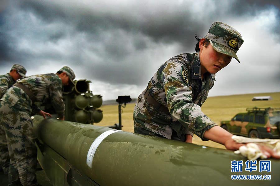Photo shows female PLA soldiers in a long-range rocket launcher live-fire exercises on the Qinghai-Tibet Plateau. An artillery detachment under the Tibet Military District of the Chinese People's Liberation Army (PLA) conducted live-fire exercises recently. (Photo/Xinhua)