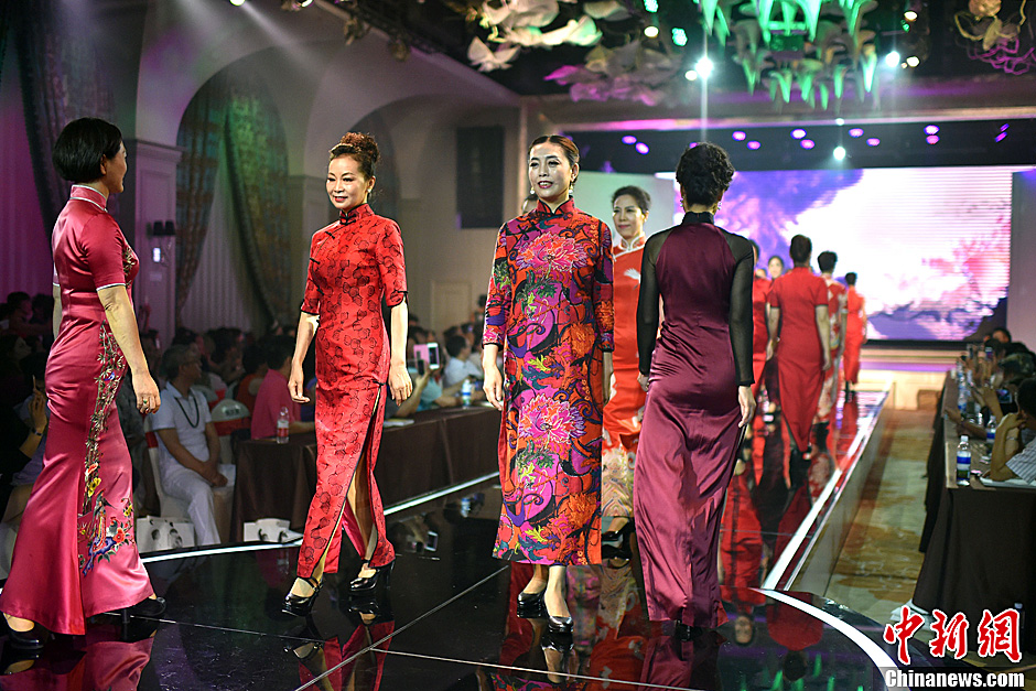 China's first collection of poems Women Wearing Cheongsam was released in Beijing recently. Models in various cheongsams shine at the launching ceremony. (CNS Photo)