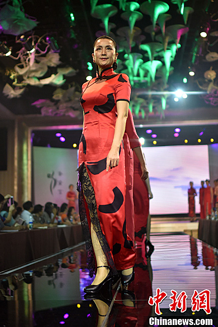 China's first collection of poems Women Wearing Cheongsam was released in Beijing recently. Models in various cheongsams shine at the launching ceremony. (CNS Photo)