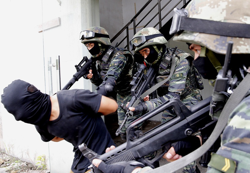 A detachment of Shanghai Armed Police Corps conducts an anti-terrorism exercise in Shanghai's Pudong District earlier in this month. The drill aims to improve the special armed police’s ability to handle emergency under full-time, all-weather, all-terrain circumstance. (Photo/ Xinhua)