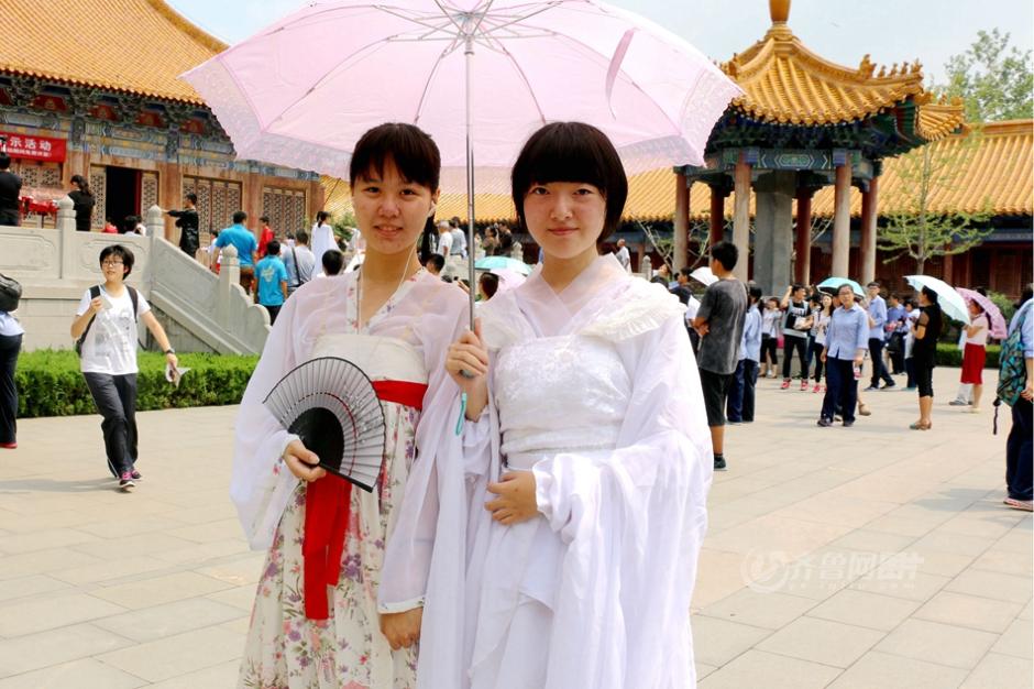 High school students in Hanfu clothing perform in a talent show in Confucian Temple on July 12, 2015 in Jinan, Shandong province.