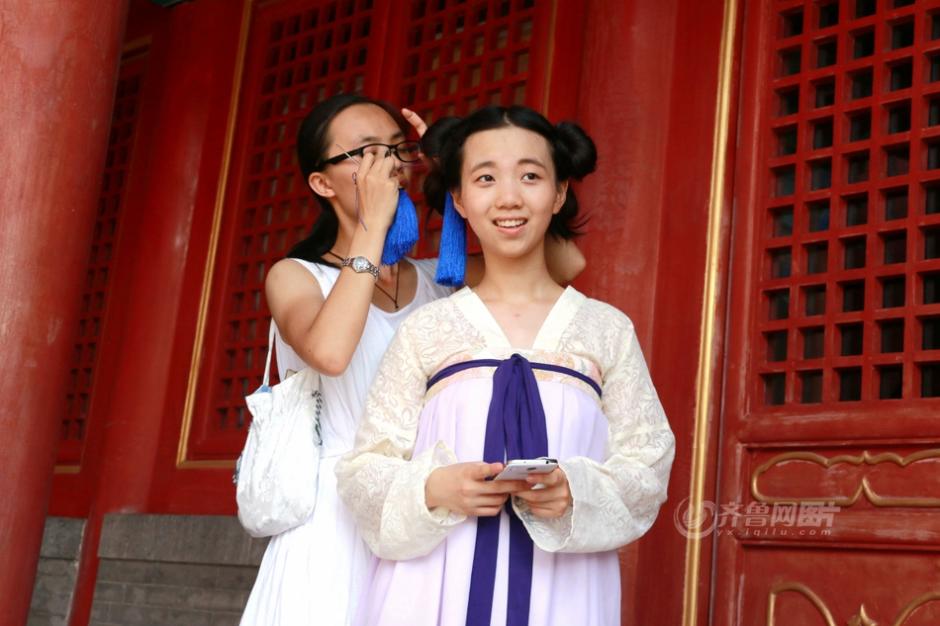 High school students in Hanfu clothing perform in a talent show in Confucian Temple on July 12, 2015 in Jinan, Shandong province.