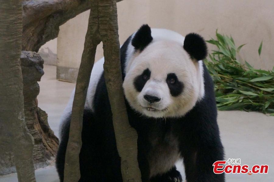 Giant panda Yuan Yuan plays at the Taipei Zoo in Taipei city, Taiwan, July 15, 2015. The 11-year-old panda had exhibited signs of pregnancy, including the loss of appetite. But experts from the Chinese mainland determined the panda is not pregnant with the help of ultrasound checks. Yuan Yuan was presented as goodwill gifts to Taiwan by the mainland. (Photo provided by Taipei Zoo)